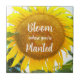 Baldosa cerámica que muestra la imagen de una gran flor de girasol amarilla junto con una cita inspiradora que dice "Bloom where you are Planted" impresa en letras blancas y estilizadas. ¡Un bonito diseño floral! Seleccione su tamaño de mosaico. ¡Hace un gran regalo para la familia y los amigos!