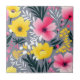 Azulejo Flores Amarillas Y Rosa Vibrantes En Gris