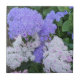 Baldosa cerámica que presenta una imagen fotográfica de flores Ageratum azules y blancas, comúnmente conocidas como Flor de flores y Rosa. ¡Un bonito diseño floral! Seleccione su tamaño de mosaico. ¡Hace un trivet de cocina de bonito!