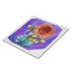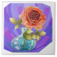 Baldosas floridas y brillantes de flores pintadas; rosa lleno florece en un jarrón de agua, sobre un resplandor violeta. Accesorio perfecto para añadir un toque de color a tu cocina (¡o a cualquier otra habitación de la casa!) Usar como trivet, o como pieza de arte.