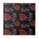 Azulejo Flores rojas en negro.