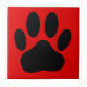 Caricatura de perro en negro. Fondo rojo. Baldosas decorativas para casas y negocios como tiendas de mascotas. Idea de regalo para los amantes del perro.