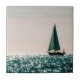 Un velero sobre un bello mar azul verdoso se adentra en el horizonte en esta acentuada baldosa de cerámica. De una foto original tomada en aguas turcas por Sun Hobo.
