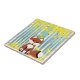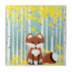 Un trívet que haría feliz cualquier decoración de otoño. Hojas amarillas brillantes cayendo sobre un zorro rojo peludo.