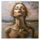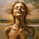 Fragmentos de la "Ópera" del mar. Esta imagen captura un momento en el que la forma humana se disuelve en las texturas del agua y la tierra. Habla de transformación, la belleza de la impermanencia y el poder crudo de la naturaleza. Una mujer perdida en el abrazo del mar, su rostro se elevó hacia el sol dorado, disolviéndose en los elementos. Esta obra refleja el delicado equilibrio entre la serenidad y la erosión.