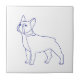 Klassisches Design in Blau-Weiß. Blaue Linienzeichnung einer französischen Bulldoggeauf weißem Untergrund.
