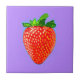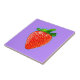 Fresa roja muy jugosa sobre fondo morado al estilo del arte pop.