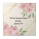 Esta cerámica presenta un diseño elegante y decorativo. Tiene un suave estampado floral con delicadas rosas rosas rosas y hojas verdes exuberantes adornando las esquinas superior derecha e inferior izquierda, añadiendo un toque de calidez y encanto. Las líneas geométricas de oro forman un sofisticado marco cuadrado alrededor del texto central, lo que le da al mosaico un aspecto artístico y refinado. El texto inscrito en el centro dice: "Amamos porque nos amó por primera vez" 1 Juan 4:19 Este verso transmite un mensaje de fe y amor, haciendo de la baldosa no sólo una hermosa pieza decorativa sino también un significativo recordatorio de devoción espiritual. La combinación de elementos florales, acentos dorados y escrituras sentidas crea un diseño armonioso ideal para exhibirse en un hogar o en un ambiente religioso.