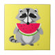 Azulejo Funny Personalizado Raccoon Comiendo sandía