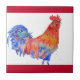 Azulejo Gallo Acuarela Rojo Amarillo Azul Gallina