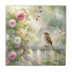 Azulejo Garden Rose Bird Watercolor Scene