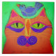 Azulejo Gato con pájaro sobre la cabeza Pintura abstracta