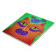 Mi colorida pintura digital abstracta de un gato con un pájaro en la cabeza impreso en mosaico de cerámica
