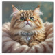 Un adorable azulejo con un adorable ilustracion de un bonito y mullido gato enarbolado que luce un collar de diamantes con un fondo verde azulado.