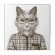 Este diseño presenta un gato vestido con una camisa y anteojos.