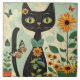 Azulejo Gato negro, girasoles, mariposas, arte nativo