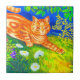 Mosaico con la pintura de animales de Louis Wain Cat Stalking (1860-1939). Un gato a rayas naranja camina por un campo verde por la noche. Flores blancas, violetas y rojas están en primer plano. Un regalo maravilloso para los amantes de los gatos y el arte inglés.