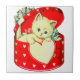 Esta imagen vintage es un gatito blanco dulce que sostiene un corazón, que asoma de su caja roja. Una tarjeta de el día de San Valentín vintage que es linda para cualquier época del año.