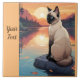Hermoso gato siamés sentado junto a un lago al atardecer. Agrega esta imagen a otros productos. Agrega tu propio texto también. Cambia el color de fondo. Muchos animales en mi tienda.