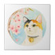 Azulejo Gato y flores de calicó japoneses