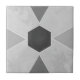 This ceramic tile features a central hexagon surrounded by four triangles, each outlined in cream for a crisp geometric design. The background is a soft swirl of grey tones, creating a soothing and artistic aesthetic. Ideal for modern bohemian or minimalist interiors.