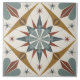 Este embaldosado moderno de mediados de siglo presenta un diseño de starburst audaz en rojo verde azulado, mostaza y óxido. Las complejas formas geométricas y la estética de inspiración vintage hacen que sea perfecta para retoños, muros de acento o para añadir un toque nostálgico a la decoración interior.