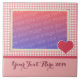 Azulejo Gingham rosa y blanco con marco cardíaco tu texto