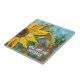 Baldosas de arte alegres. Fantástico arte. Girasol pintado en un luminoso jardín de flores. Al estilo Van Gogh. ¡Personalízalo! ¡Eres mi Sunshine! No te dejes en blanco. Pequeñas anguilas disponibles en tiendas de artesanías y cajas grandes, o agregar un corcho o un fieltro para hacer una alegre montaña rusa. ¡Qué saludo tan agradable para la esposa, la novia, la hija, el compañero de trabajo!