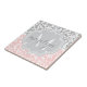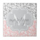 Azulejo Girly Damask Swirls Monogramado rosa y gris