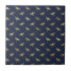 Baldosa azul marino con libélulas de oro. El código hexadecimal para el azul marino es #202A44.