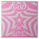 "God Is Love" Pastel Pink & Gray Star Ceramic Keepsake Tile - Christening Nursery Art Gift | Achempong