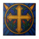 Azulejo Gold Christian Cross Stained Glass Ceramic Tile