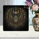 Adorn your space with the mystique of ancient Egypt with this stunning ceramic tile. Featuring a detailed Egyptian scarab beetle intricately designed with gold and teal accents, this piece is a true work of art. The scarab is surrounded by celestial motifs, including moons, stars, and the Eye of Horus, all rendered in a radiant gold against a deep black background. The inclusion of the Ankh symbol adds a layer of spiritual significance, representing life and immortality. This tile is perfect for anyone who appreciates Egyptian mythology, occult symbolism, or unique, eye-catching decor.