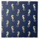 Elegant dark navy blue background with gold tone little seahorses. Nautical beauty to give your day a touch of beach and ocean feel.