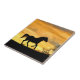 Una hermosa mañana dorada iluminada por el sol con una silueta de caballo de bonito bajo la luz. Una hermosa baldosa de arte de campo de caballo. Hace un gran regalo para el amante del caballo o el campo de casa.