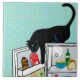 Un gato negro astuto la ayuda a un bocadillo lechero en la heladera abierta. La vida de mi artista fue creando narrativas sobre la vida de gatos y gatos en los mercados de artesanías durante muchos años. En esta serie de baldosas de arte, regreso a mis terry johnson azulejos. Mi amor por los gatos los convierte en mi sujeto favorito para hacer mi arte.