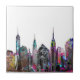 Esta imagen de estilo callejero muestra el perfil de Manhattan en la ciudad de Nueva York cubierta de graffiti. El cuarto de baño está bien enmarcado.