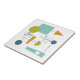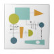 Esta fabulosa baldosa cerámica moderna de mediados de siglo tiene cuadrados, círculos, triángulos y líneas en los colores turquesa, naranja, verde, azul y negro, ¡como un diagrama de flujo! Esto hará una adición muy divertida a tu proyecto de baldosas. También es grandioso para los amantes de los gráficos y gráficos.