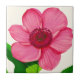 Baldosa cerámica en una imagen de una anémona, en tonos rosa coral, con un centro borgoñoso y hojas verde esmeralda