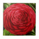 Baldosa cerámica en un ilustracion botánico vintage de una flor única, grande, camélica, realzada digitalmente y coloreada, en tonos rojos chinos profundos