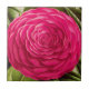 Baldosa cerámica en un ilustracion botánico vintage de una flor única, grande, camélica, realzada digitalmente y coloreada, en tonos de rosa fucsia profunda