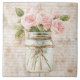 Azulejo Granja de rosas rosadas de tarro rústico de masas