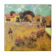 Granja en Provenza por Vincent van Gogh es una pintura arquitectónica postimpresionista de arte fino vintage que presenta un paisaje con un agricultor en los prados y una puerta que conduce a una granja en el sur de Francia.