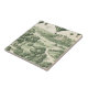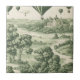 A classic Toile de Jouy pattern ceramic tile in deep muted green featuring rolling countryside scenes, charming village details, and vintage hot air balloons drifting above the landscape. This elegant monochromatic design captures a timeless French aesthetic. Ideal for lovers of traditional décor, cottage style, travel-themed art, and unique vintage-inspired gifts.