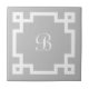 Un borde de clave griega blanco enmarca un monograma con un tipo de letra de guión en blanco sobre un fondo gris. Personalizar fácilmente con su propia inicial. También hace un gran regalo personalizado de limpieza!