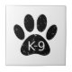 Un lindo estilo personalizado de la huella de la pata del perro y el texto con un efecto grunge y angustiado aplicado a la imagen. Baldosas de cerámica personalizado con tema K9. Idea de regalo.