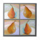 El diseño original de este mosaico cerámico es una agrupación de fotos de una fresca pera de Bartlett. La fotografía original de ZoeSPEAK muestra la misma pera fotografiada desde dos ángulos diferentes, una vida quieta en un plato blanco, con diferentes colores pastel de las sombras y el fondo. La pera es de color naranja pardo con un tallo curvado marrón oscuro. El color de la baldosa de fondo es un gris medio, pero puede cambiarse a otro si lo prefiere. Disfrute del atractivo de la fruta fresca en cualquier momento con esta baldosa.