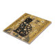 Este diseño es un ilustracion estilizado de un gato negro de la manera artística de Gustav Klimt. El gato está instalado en una zona de descanso, adornado con motivos y motivos decorativos intrincados que recuerdan el estilo característico de Klimt, con formas geométricas, elementos florales y diseños circulares. El fondo cuenta con una superficie dorada y texturada con follaje estilizado y flores, lo que realza aún más la estética de Klimt-esque. La impresión general es de elegancia ornamental y riqueza decorativa, mezclando imágenes de animales con principios de arte decorativo.