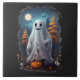 Au cœur d’une forêt automnale, sous un ciel nocturne éclairé par une lune pleine, un fantôme souriant se dresse fièrement. Son drap blanc flotte doucement dans la brise, parsemé de taches et de trous qui ajoutent à son charme spectral. À ses pieds repose une citrouille sculptée avec soin, dont les yeux et la bouche illuminés projettent une lueur chaleureuse sur le sol forestier. Des feuilles d’oranger tombées encadrent la scène, tandis que des chauves-souris silhouettées volent au loin, complétant cette célébration visuelle de l’esprit d’Halloween.