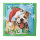 Celebra la temporada navideña con un alegre y adorable buitre americano que viste un sombrero de Santa y una bufanda en medio de copos de nieve y las palabras, ¡Feliz Amanecer! Excelente idea de regalo de vacaciones para familias y amigos amantes de APBT.
